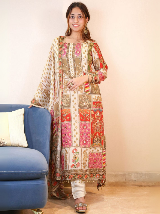 Sale Bestseller TrendingBoho Off-White Khadi Mirror Work Set