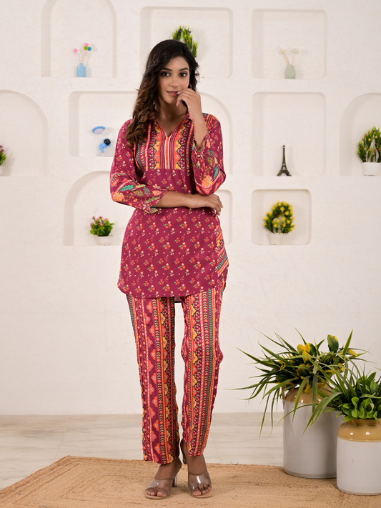 Sold out New & TrendingMaroon Plain Co-Ord Set