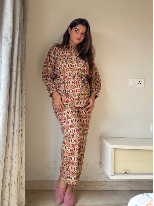 Sale BestsellerDark Beige Cotton Co-ord Set With Belt