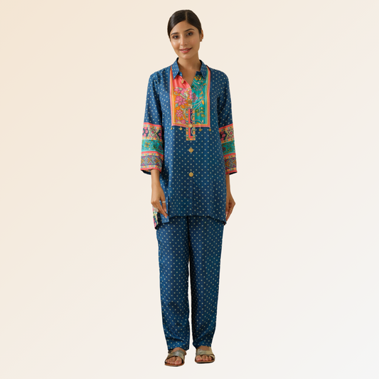 Sold out BestsellerBlue Bandhani Print Muslin Co-Ord Set