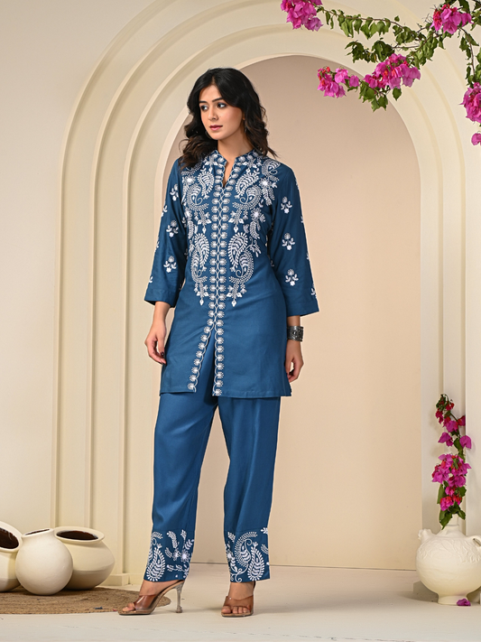 Contemporary Blue Embroidered Co-ord Set