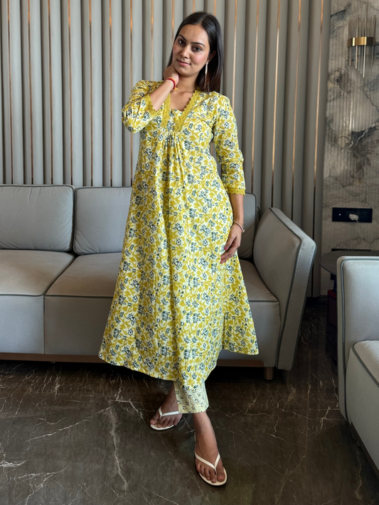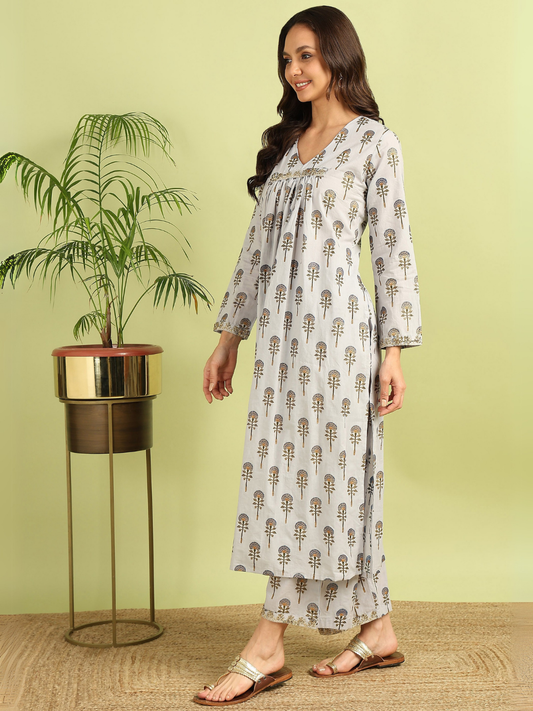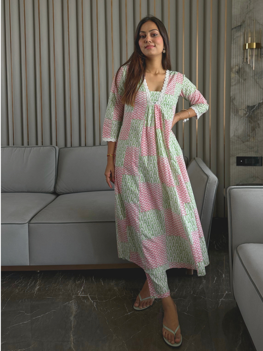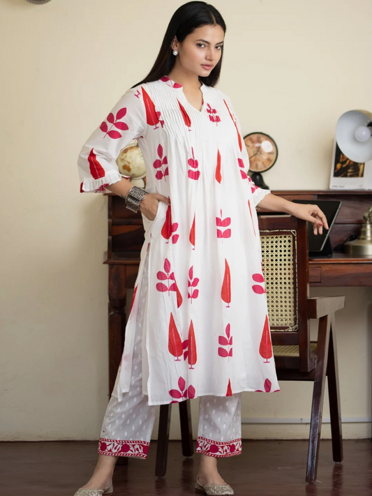 Sale Bestseller TrendingHand Block Print Cotton Co-ord Set with Pintuck Yoke