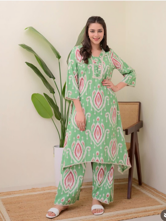 Sale TrendingBreezy Ikat Print Kurta Set