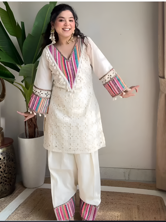 Sale Bestseller TrendingBoho Off-White Khadi Mirror Work Set