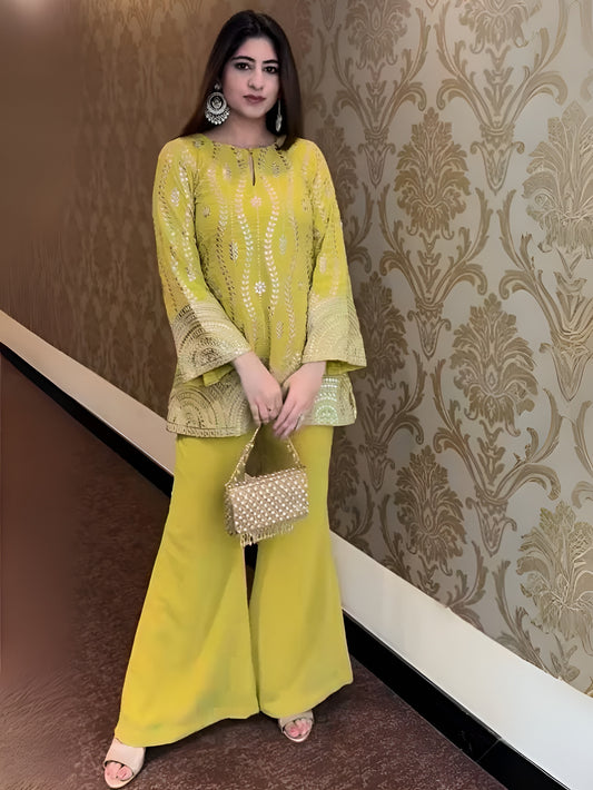 Sale Bestseller TrendingRegal Glamour Lime Yellow Co-ord Set