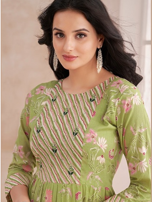 Green Rayon Ankle Length Dress