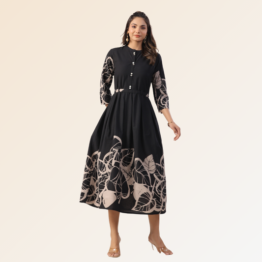 Sold out Bestseller NewBlack Dress With Leaf Print