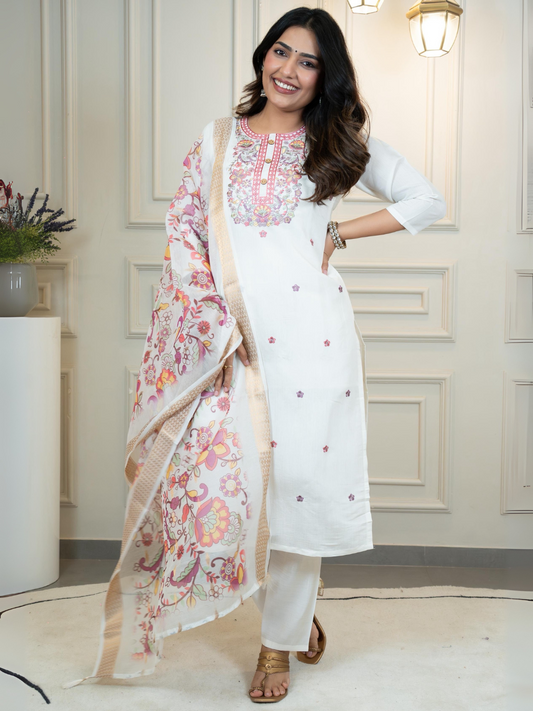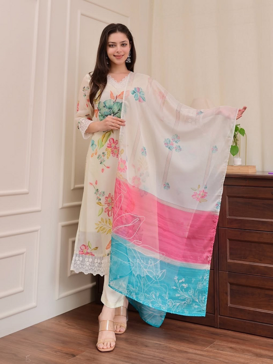 Sale Bestseller TrendingBloom in Elegance: Off-White Organza Dupatta Set