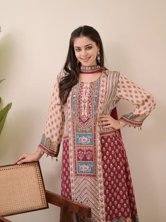 Elegant Grace: Roman Silk Embroidered Dupatta Set