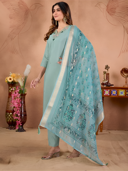 Serene Mint Roman Silk Embroidered Dupatta Set
