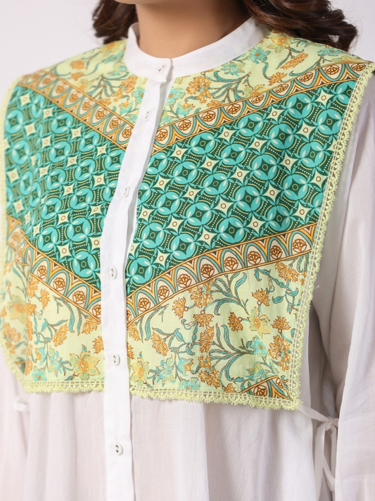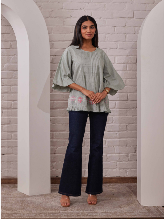 Light Green Pintuck Tunic with Floral Embroidery