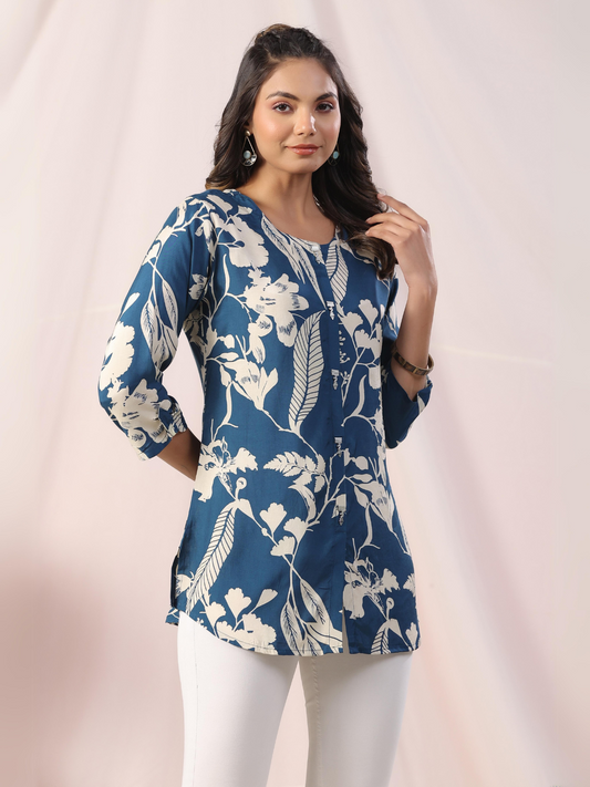 Sold out BestsellerDark Blue Floral Print Muslin Tunic