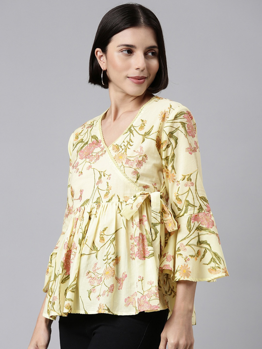 Sale New & TrendingLemon Yellow Flowy Floral Cotton Top