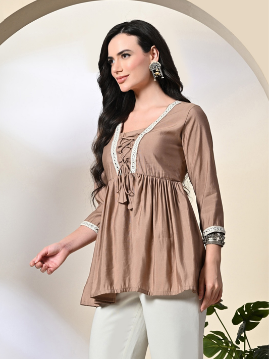 Sold out TrendingOnion Pink Flowy Lace-Detail Top
