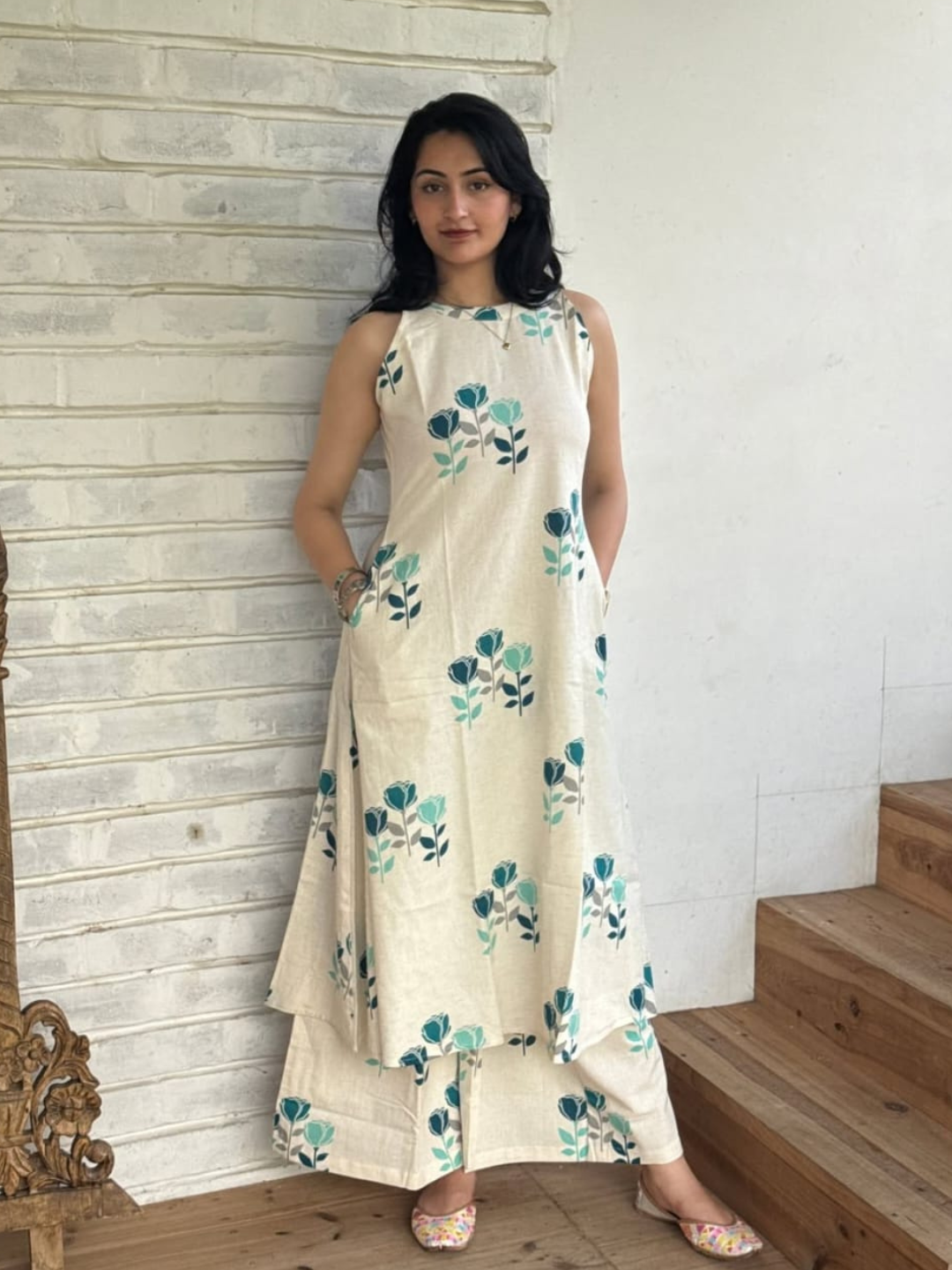 The top comes with functional side pockets for everyday convenience, and optional detachable sleeves for styling versatility. Paired with a matching cotton palazzo, this set promises all-day comfort — making it perfect for daily wear, workwear, casual outings, or travel days.