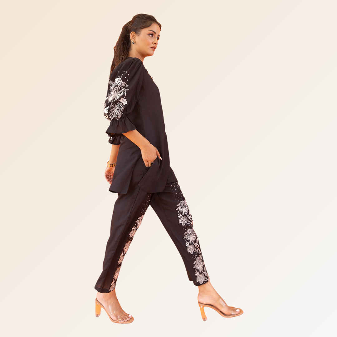Black Co-ord Set With White Embroidery