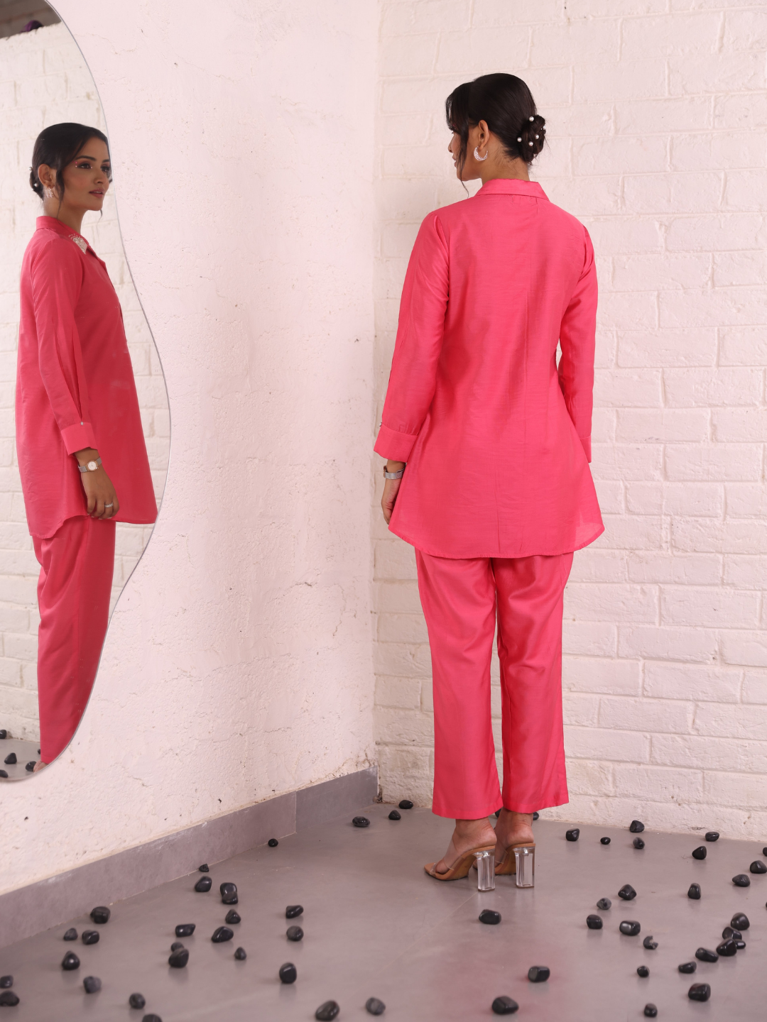 Whether you're attending a daytime event, heading to the office, or enjoying a casual outing, this coral co-ord set is versatile enough to suit any occasion. Pair it with your favorite heels or flats and simple accessories to complete the look. Embrace effortless elegance with this stunning co-ord set that combines vibrant color with timeless style.
