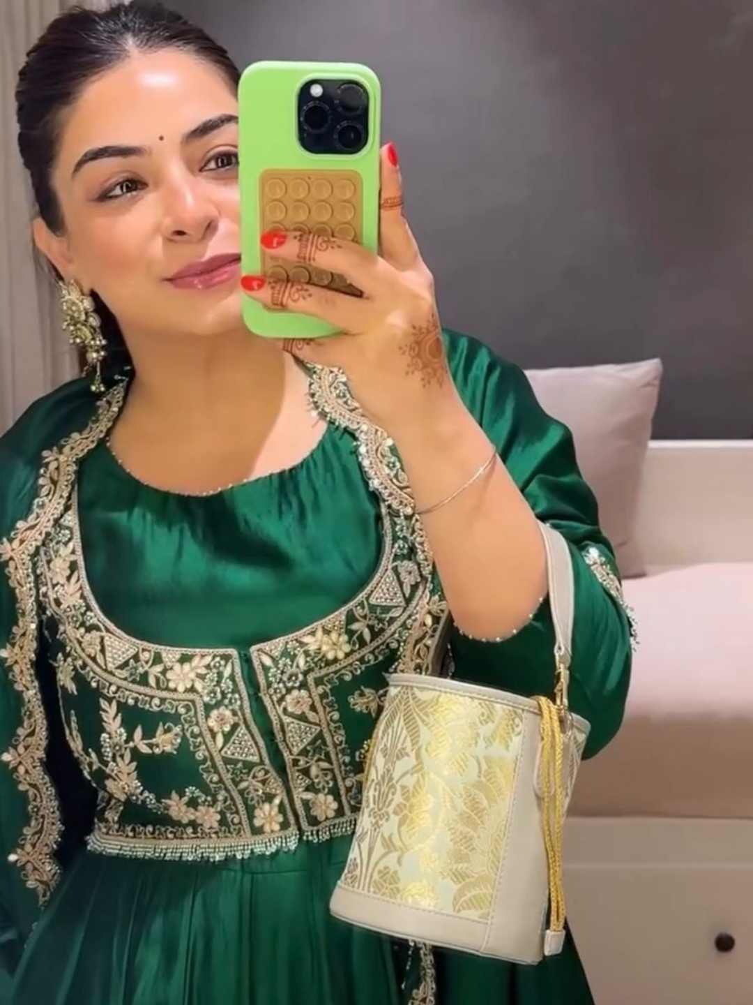 Turn heads in this exquisite full-length gown crafted from luxurious Chinon silk. The set features a richly embroidered koti that adds royal charm, paired with a matching dupatta adorned with delicate scalloped edges and intricate embroidery. Perfect for weddings, festive celebrations, or elegant soirées — where tradition meets timeless grace.